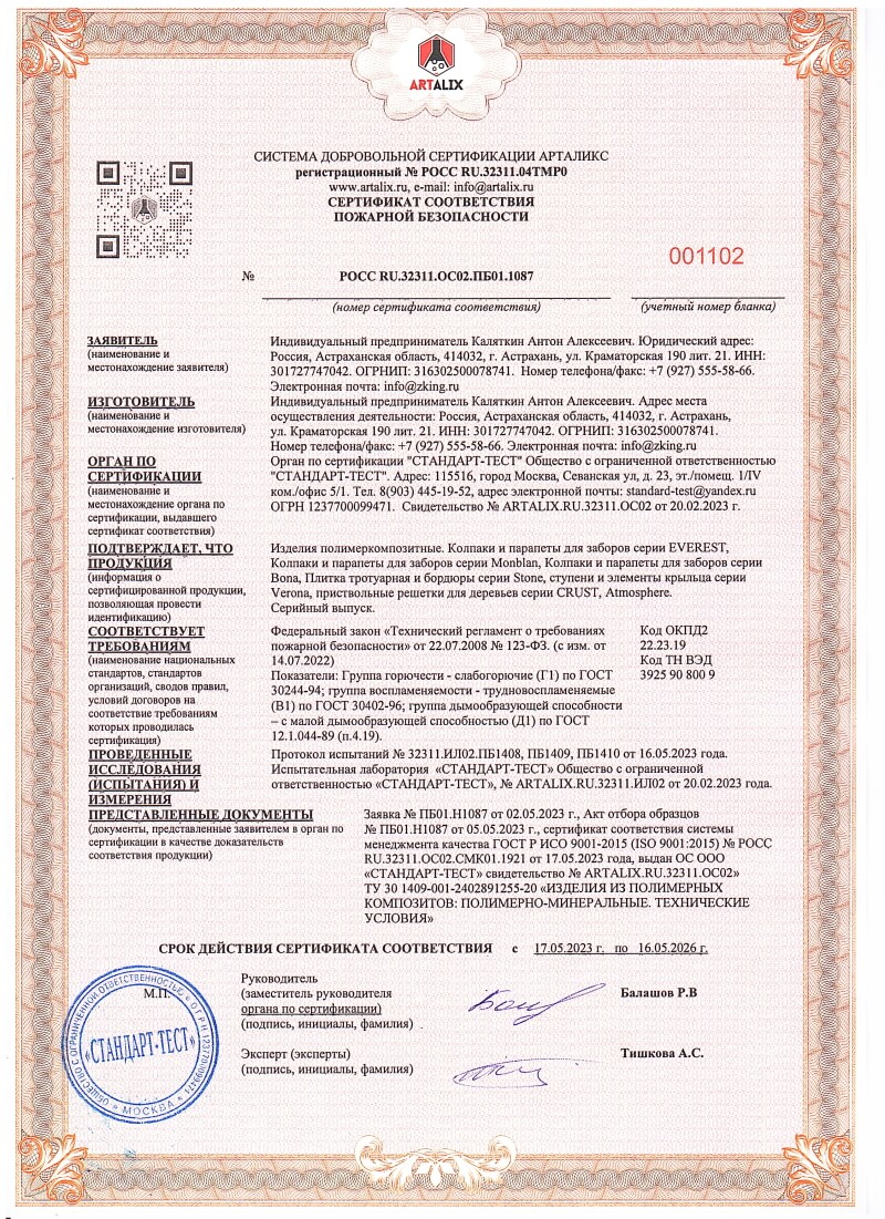 Колпаки и парапеты ZKING полимерпесчаные